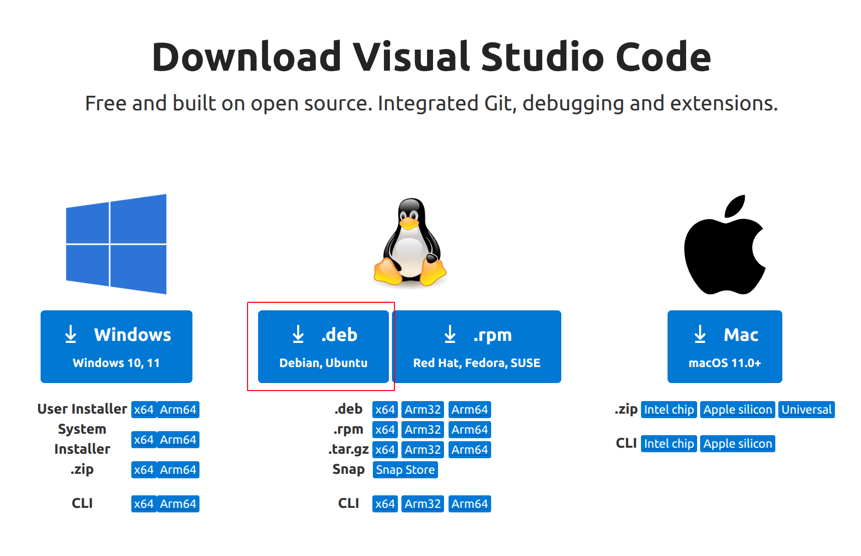 您需要在 Visual Studio Code 的官方网站中选择您所使用平台的对应版本。